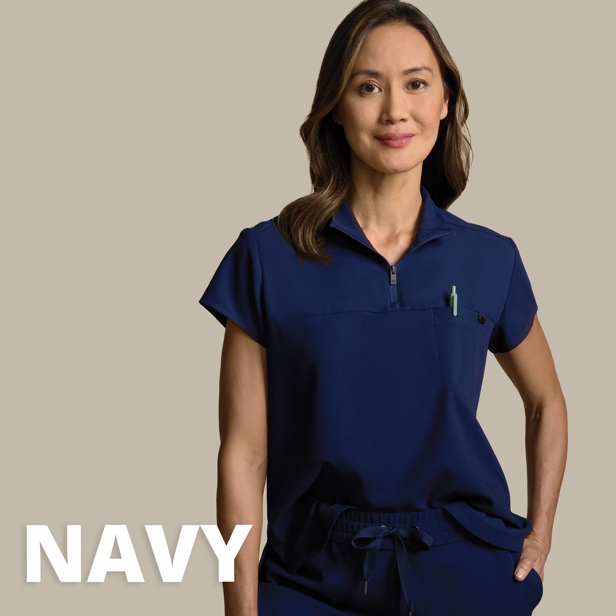 One Navy Top, One Navy Pant/Skirt, and One Navy or White Jacket